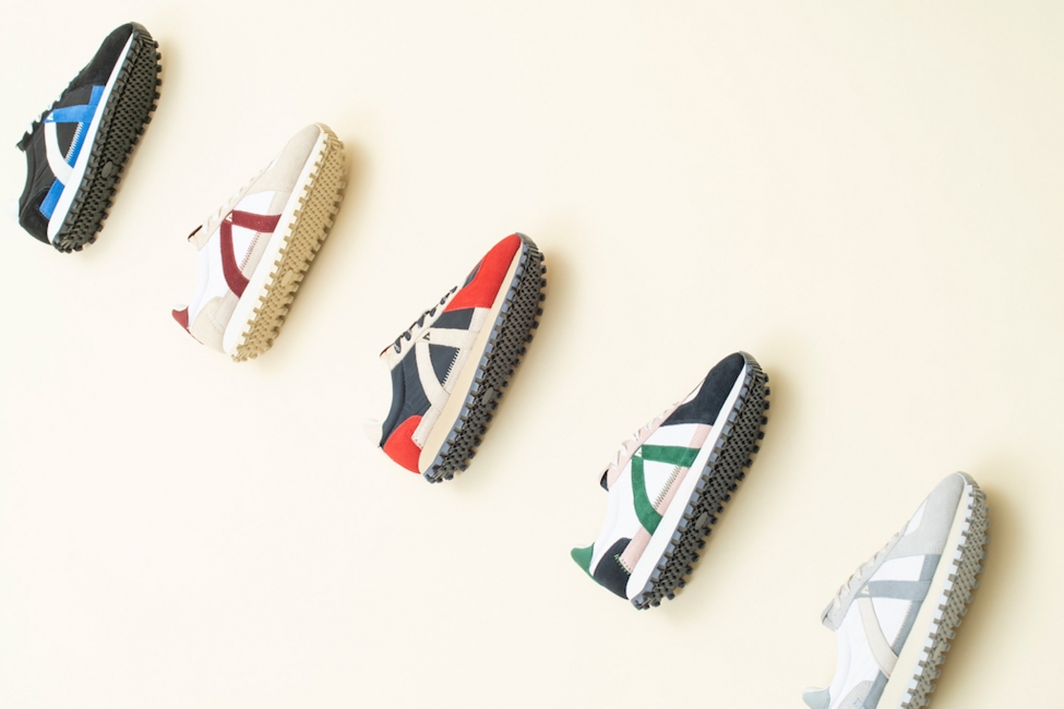 今回登場した「ゲート」は、1980年代のマラソンシューズからインスパイアされたスニーカー。ハイテク系よりもシンプルでクラシックなスニーカーで、どこか懐かしさを感じつつも今の装いにマッチ。ナイロンとスエード素材のカラーコンビネーションに存在感のあるオーバーサイズのモチーフにさりげないロゴ、カラーによって楽しめるシューレースなどのユニークなデザインにスッキリとした現代的なシルエットが特徴です。
