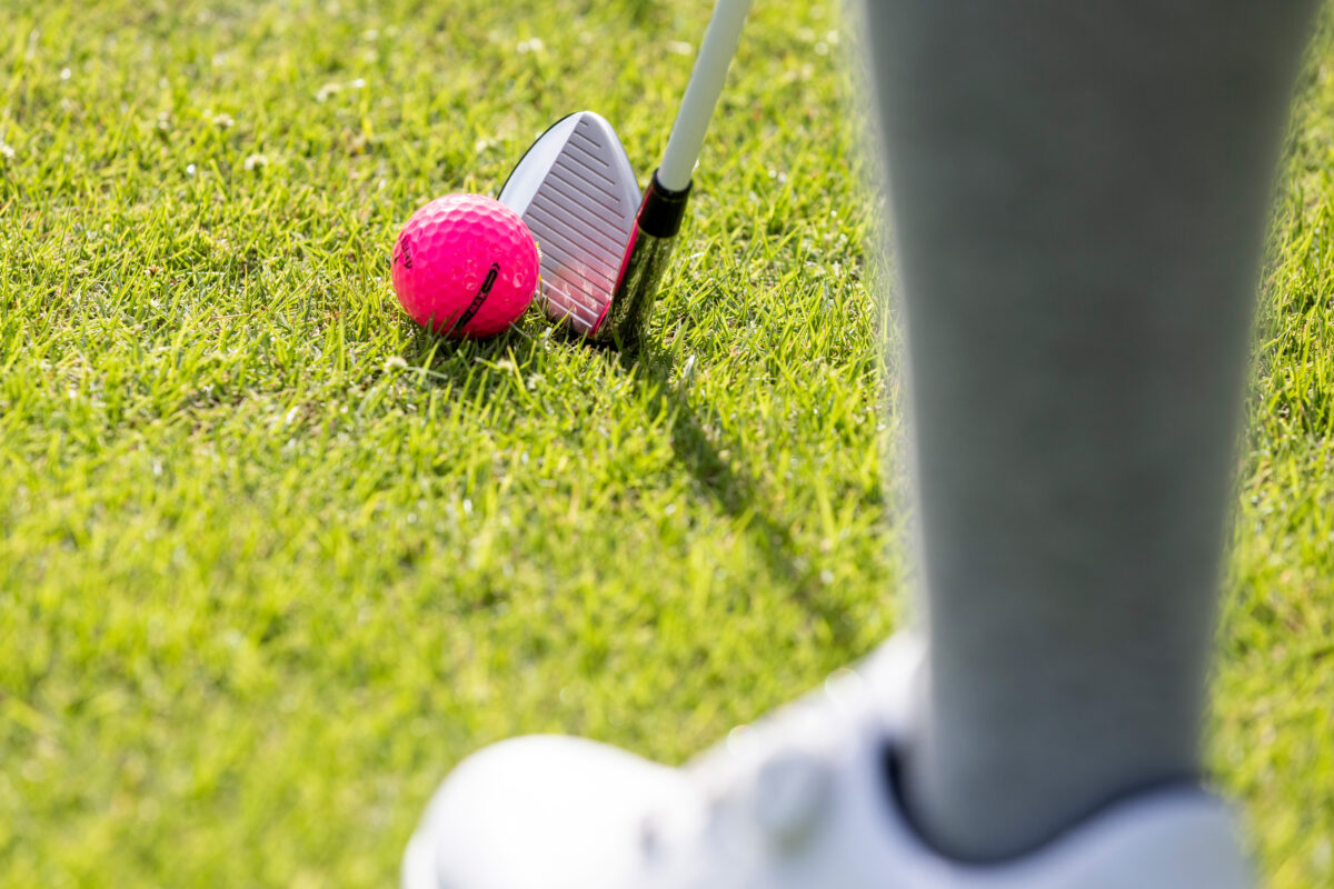 その秘密は「通常よりも少し大きい」という、ボールの大きさ。ボールのサイズが大きくなると、“構えやすさ”と“打ちやすさ”が格段にアップ。ターゲットに対してまっすぐに構えやすくなるうえに、当てることができればしっかり飛ばせる“フェースのセンター”で打つことが簡単になるため、ミスヒットがぐんと減るんです。