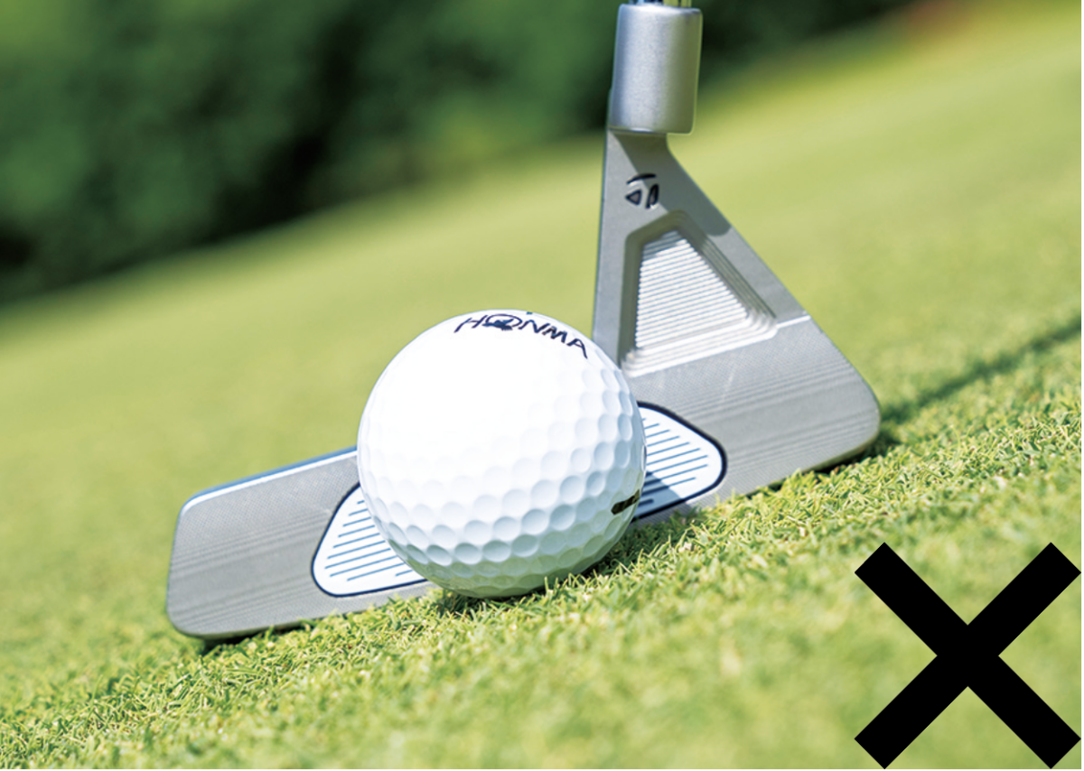 大きく曲がるラインで引っかけや押し出してしまうミスが多い人は要確認。斜面に沿ってパターをソールせず、スライスラインはトゥ側が、フックラインはヒール側が浮く「パターの〝ライ角どおり〟」に構えて打ちましょう。