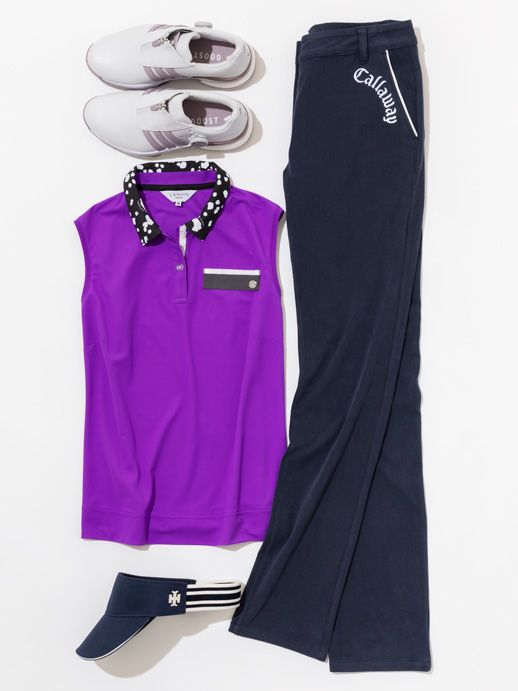 【Callaway/キャロウェイ】裏クール 8WAYストレッチ ニットパンツ/1万1000円【LANVIN SPORT/ランバン スポール】ノースリーブシャツ/2万6400円【TORY SPORT/トリー スポーツ】パフォーマンス バイザー/1万4300円【adidas Golf/アディダスゴルフ】ウィメンズ ツアー360 24 ボア/2万8600円(編集部調べ)