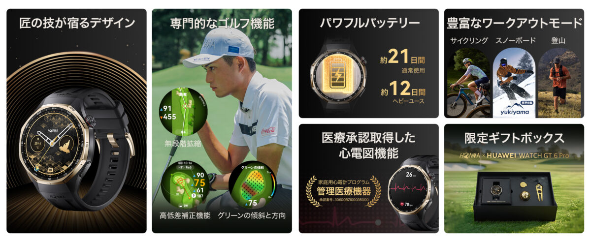 ゴルフクラブ・スポーツ用品のメーカーである株式会社本間ゴルフと通信機器大手の華為技術日本株式会社(ファーウェイ・ジャパン)は10月14日(火)に日本限定モデル『HONMA×HUAWEI WATCH GT 6 Pro』を発売すると発表した。