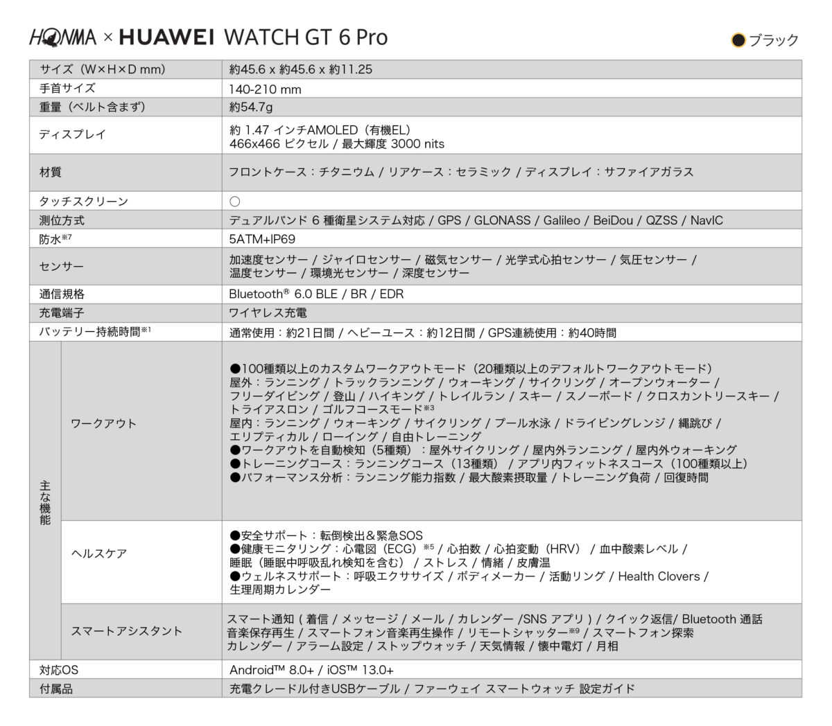 本製品はファーウェイの最新スマートウォッチ『HUAWEI WATCH GT 6 Pro』をベースに、HONMAの世界観を融合したデザインに仕上げたとのこと。