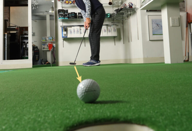 ロングパットが寄らない人は顔を下に向けたまま素振りして、目で見てつかんだ距離感のイメージをストロークに活かしていない。素振りなら初心者でもすぐにマネできますから、ぜひ試してください。