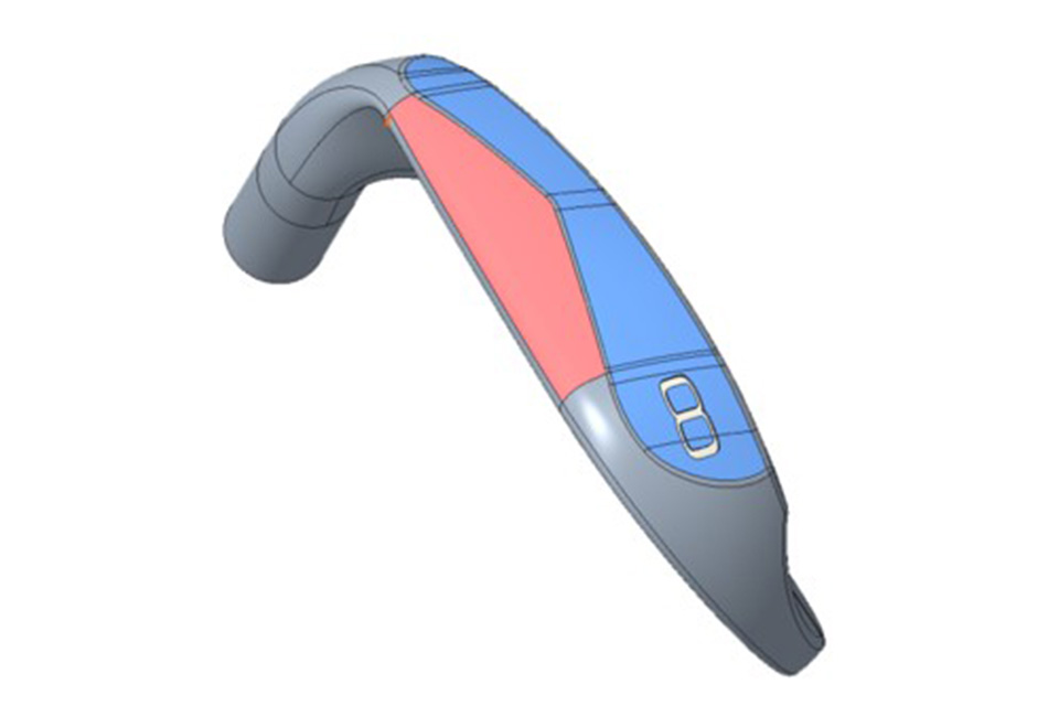 7番ユーティリティ、8~9番アイアン、PW、GWには、それぞれ“ダフりにくい”ことを追求したソール形状を採用しています。7番ユーティリティは3面に分かれたソール形状、アイアンはリーディングエッジ(右図赤色部分)とトレーリングエッジ(右図青色部分)をグラインドしたソール形状により、“ダフりにくさ”と“抜けの良さ”を両立しています。ボール手前の地面を打ってしまった場合でもソールが滑り、とにかく前進することを重視したクラブ設計となっています。