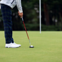 体重配分は左足荷重です。右足体重はあおった打ち方になってしまうので、上手にダフれません。ただし、「左足体重にしてください」というと10割近く左足に乗せてしまう人がいます。1、2割ほど多く乗せるだけでいいんですよ。